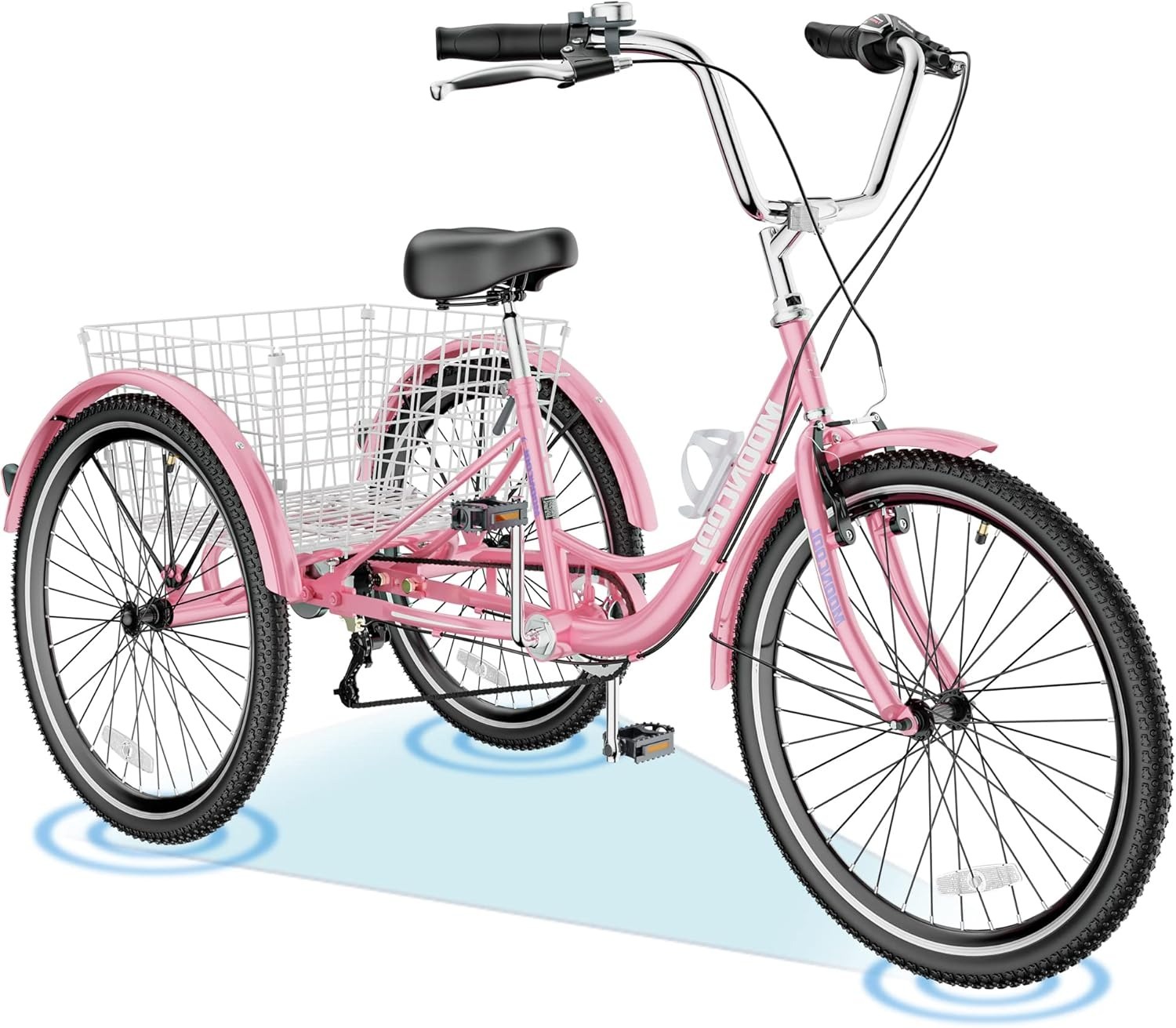 Stable 3-wheel design ideal for adults and seniors.Double-wall wheel rims for extra durability and safety.